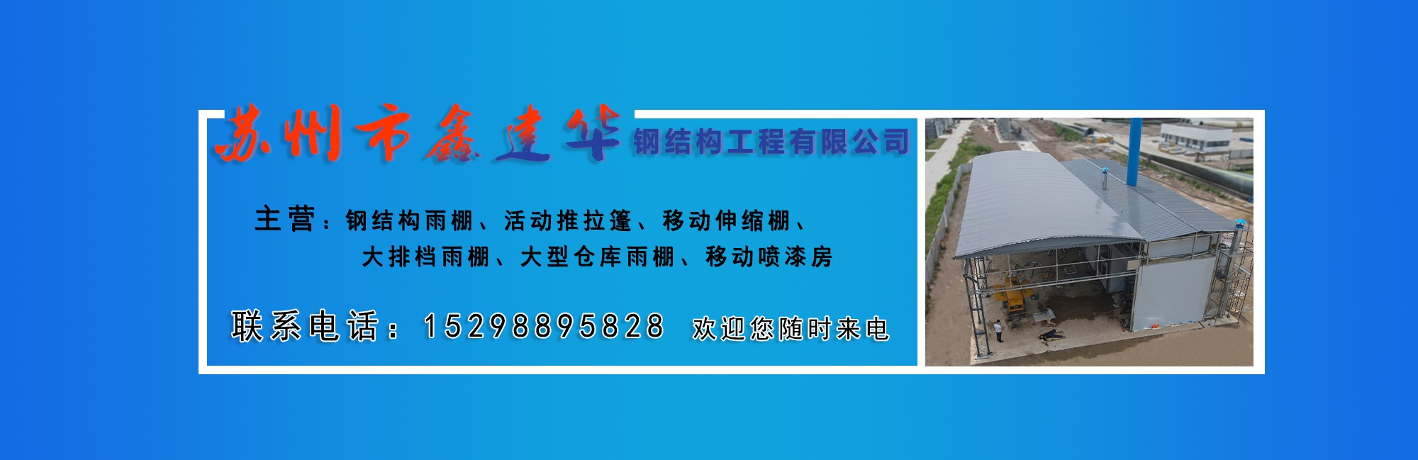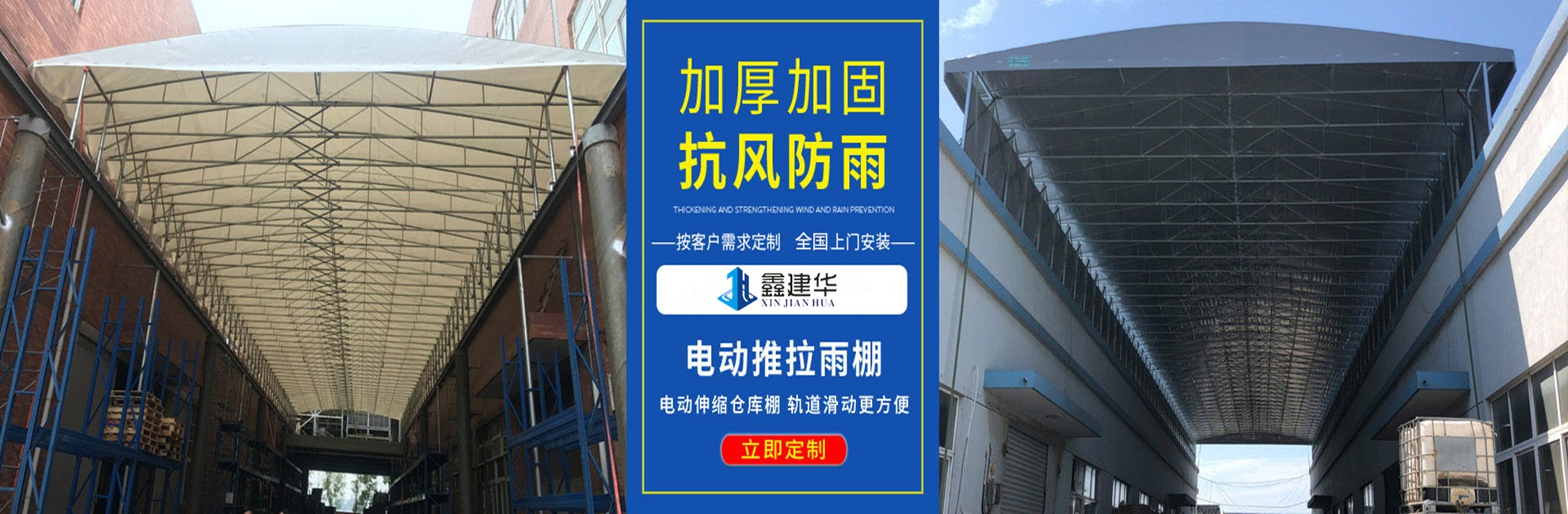 蘇州鑫建華鋼結構工程有限公司,是一家從事戶外倉儲雨棚,活動雨棚、移動雨棚設計、生產、銷售、技術服務的公司。 鑫建華擁有多地加工廠區(江蘇蘇州,天津,湖北武漢,山東聊城,四川成都,廣東東莞),服務范圍多地。公司匯集了一批擁有豐富實踐經驗的技術人才,設計出實用電動推拉倉儲產品,實現空間利用的趨勢。作為江浙滬地區戶外遮陽倉儲的公司,注重在新產品研制開發方面的投入,在技術理念和造型設計等方面不斷推陳出新,在質量和服務上信守承諾。